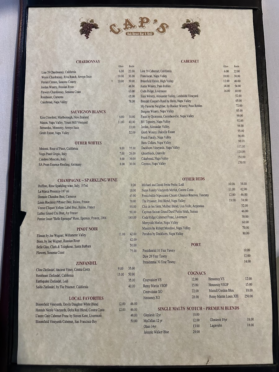 Welcome to Cap's Oak Street Bar & Grill, a culinary gem nestled in the heart of Brentwood, California. This beloved restaurant, located at 144 Oak St, is renowned for its enticing menu that showcases a delectable range of steaks, seafood, and hearty Italian dishes, all crafted with the freshest ingredients to tantalize your taste buds.