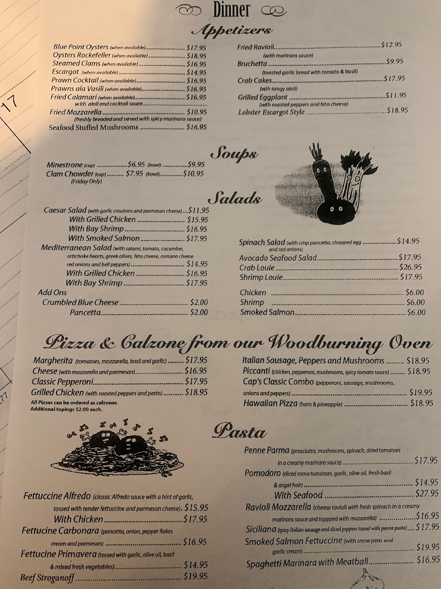 Seafood lovers will rejoice over offerings like the Pan Seared Ahi Tuna with Orange Avocado Salsa ($29.95) and the exquisite Grilled Escolar Seabass ($26.95), each prepared to perfection and served with flair. And let’s not forget the comforting Cap's Lasagna ($16.95), which brings a touch of Italy to your table, delighting diners with layers of deliciousness.